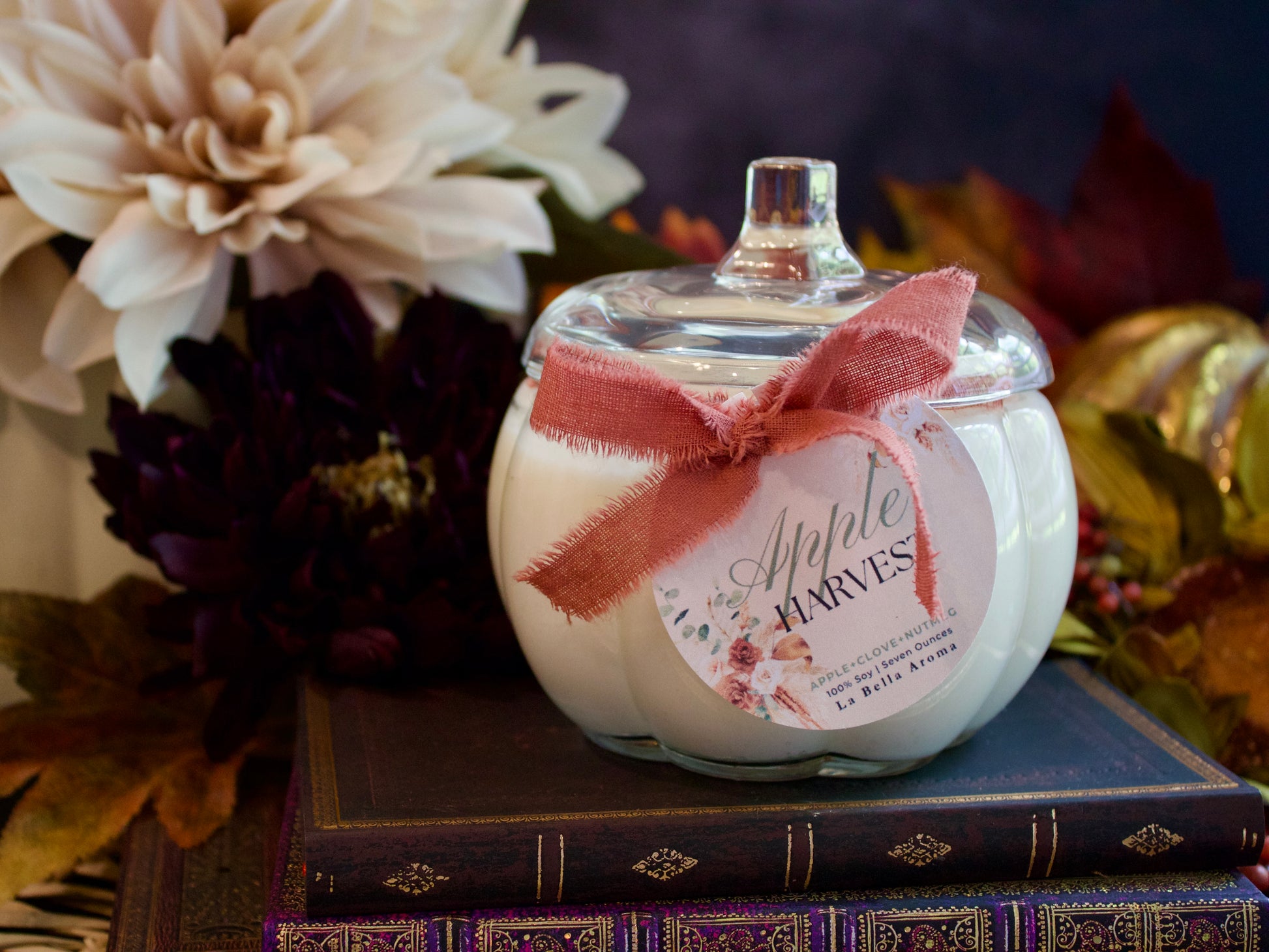 🍂 La Bella Aroma Fall Glass Pumpkin Candle – 16oz Soy Candle